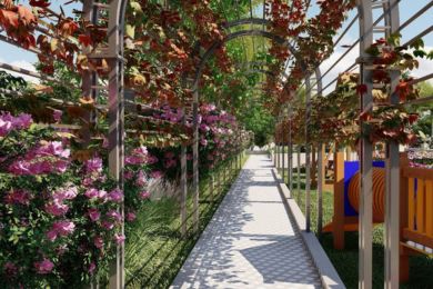 A dedicated walking area with safe pathways, greenery, fresh air, and a calm environment promoting daily fitness and wellness.
